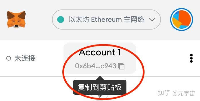 2、点击“Account1”可复制你的钱包地址,该地址类似于你的银行卡账号,之后不管是钱包向钱包转币,还是钱包与平台(https://cnouyi.care/join/1814707047)冲提币,都需要用到这个地址。