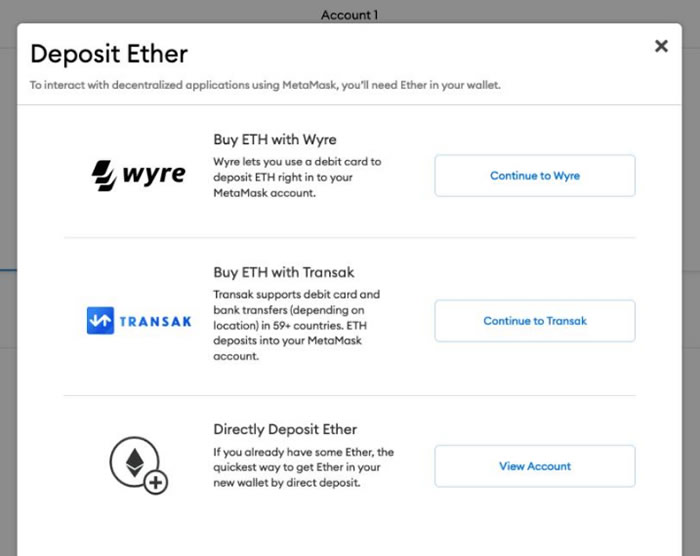 要购买ETH,您需要将钱包连接到借记卡或银行。这是通过Wyre或Transak完成的。