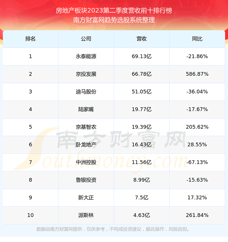 按照趋势选股系统统计,该股所属板块为房地产板块,该板块共有22只股票,市北高新2023第二季度营收在该板块中排名为第22名,该板块2023第二季度营收排名前十的股票如下表: