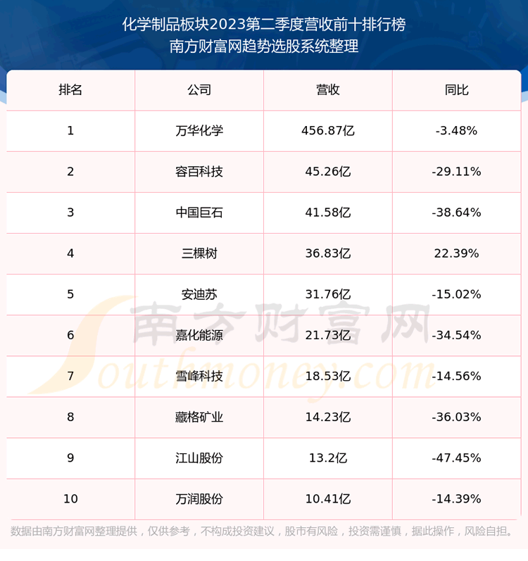 按照趋势选股系统统计,该股所属板块为化学制品板块,该板块共有37只股票,宁科生物2023第二季度营收在该板块中排名为第35名,该板块2023第二季度营收排名前十的股票如下表: