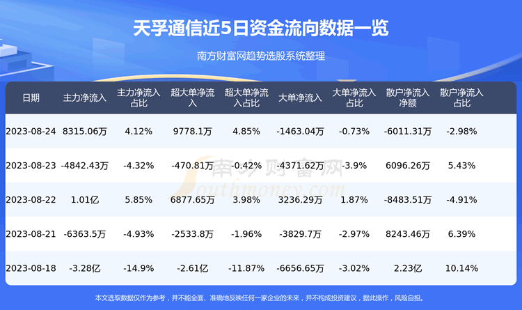 近5日资金流向一览见下表: