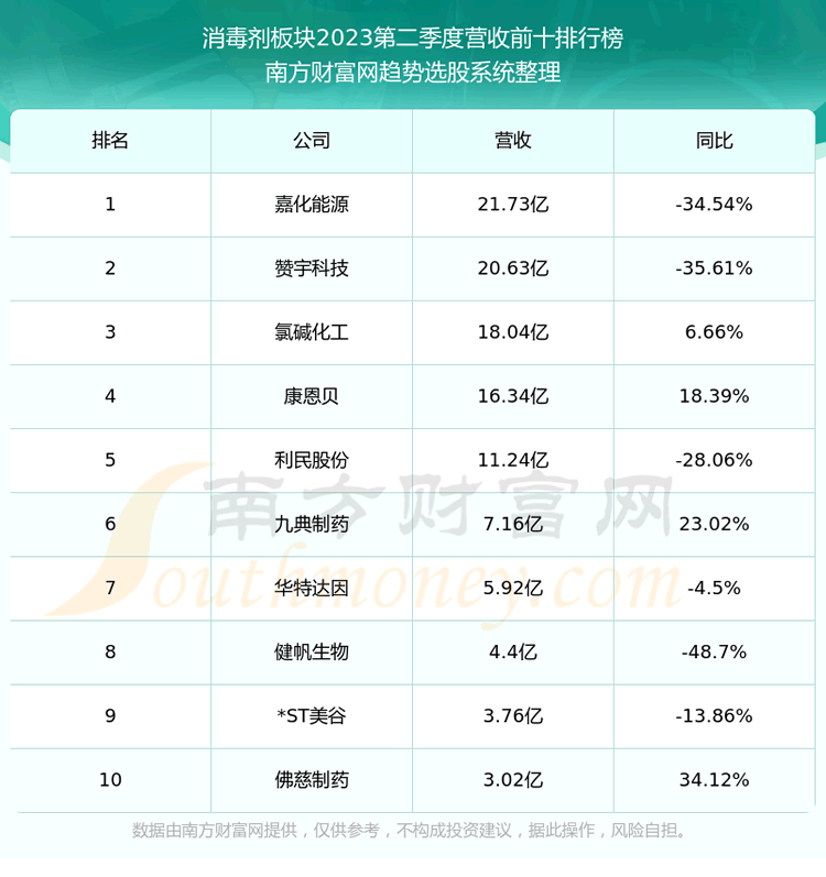 按照趋势选股系统统计,该股所属板块为消毒剂板块,该板块共有13只股票,马应龙2023第二季度营收在该板块中排名为第13名,该板块2023第二季度营收排名前十的股票如下表: