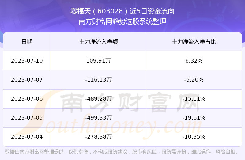 二、赛福天(603028)近期盘面、资金面情况