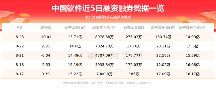 中国软件8月23日融券信息显示,融资方面,当日融资买入8978.88万元,融资偿还1.79亿元,融资净买额-8923.47万元。融券方面,融券卖出130.74万股,融券偿还29.32万股,融券余量275.03万股,融券余额1.27亿元。融资融券余额14.99亿元。近5日融资融券数据一览见下表: