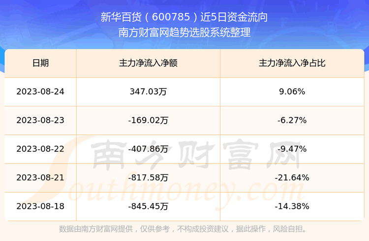 二、新华百货(600785)近期盘面、资金面情况