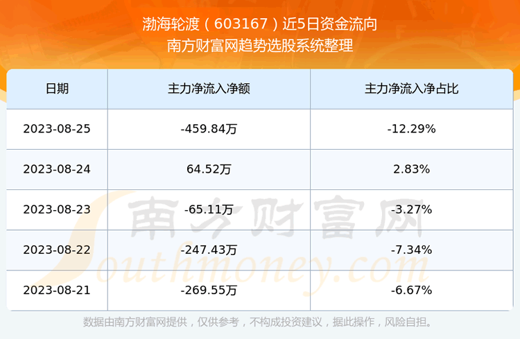 二、渤海轮渡(603167)近期盘面、资金面情况