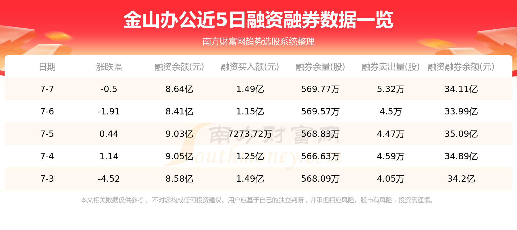 金山办公7月7日融券信息显示,融资方面,当日融资买入1.49亿元,融资偿还1.25亿元,融资净买额2371.48万元。融券方面,融券卖出5.32万股,融券偿还5.12万股,融券余量569.77万股,融券余额25.47亿元。融资融券余额34.11亿元。