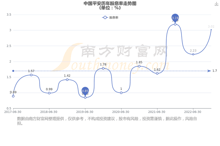近年中国平安年度股息率走势如下图: