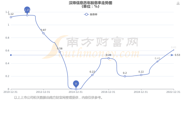 近年汉得信息年度股息率走势如下图: