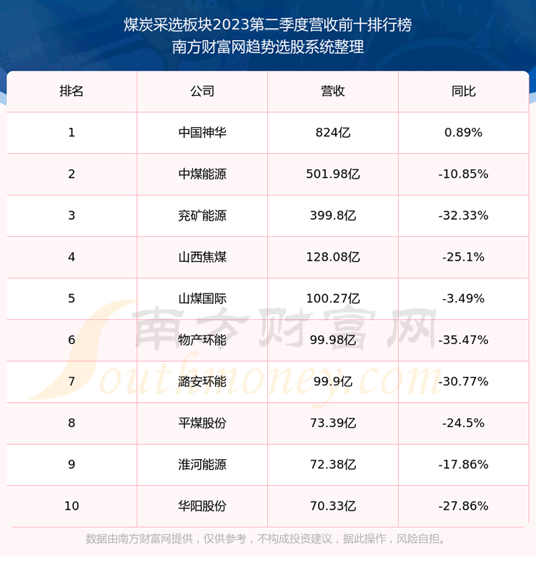 按照趋势选股系统统计,该股所属板块为煤炭采选板块,该板块共有27只股票,上海能源2023第二季度营收在该板块中排名为第18名,该板块2023第二季度营收排名前十的股票如下表: