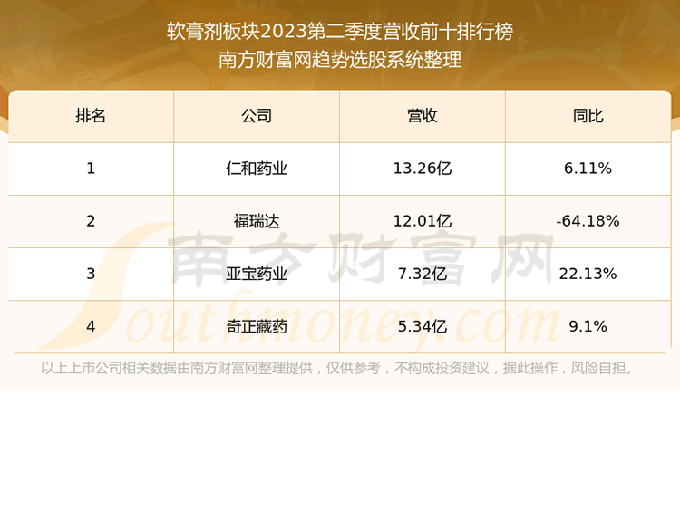 按照趋势选股系统统计,该股所属板块为软膏剂板块,该板块共有4只股票,羚锐制药2023第二季度营收在该板块中排名为第4名,该板块2023第二季度营收排名前十的股票如下表: