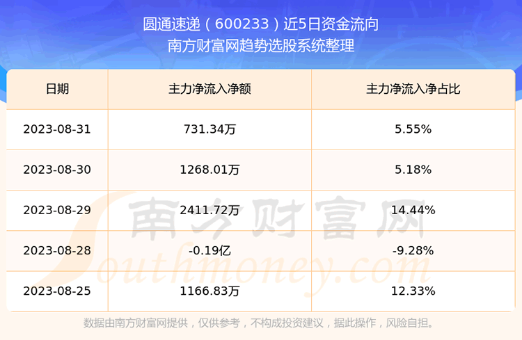 二、圆通速递(600233)近期盘面、资金面情况