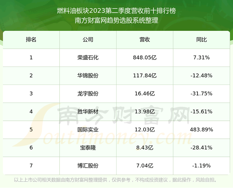 按照趋势选股系统统计,该股所属板块为燃料油板块,该板块共有7只股票,宁波富达2023第二季度营收在该板块中排名为第7名,该板块2023第二季度营收排名前十的股票如下表: