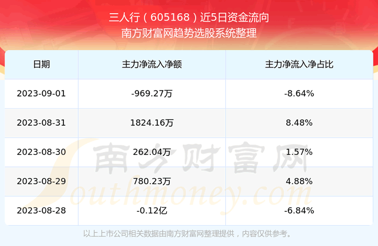 二、三人行(605168)近期盘面、资金面情况