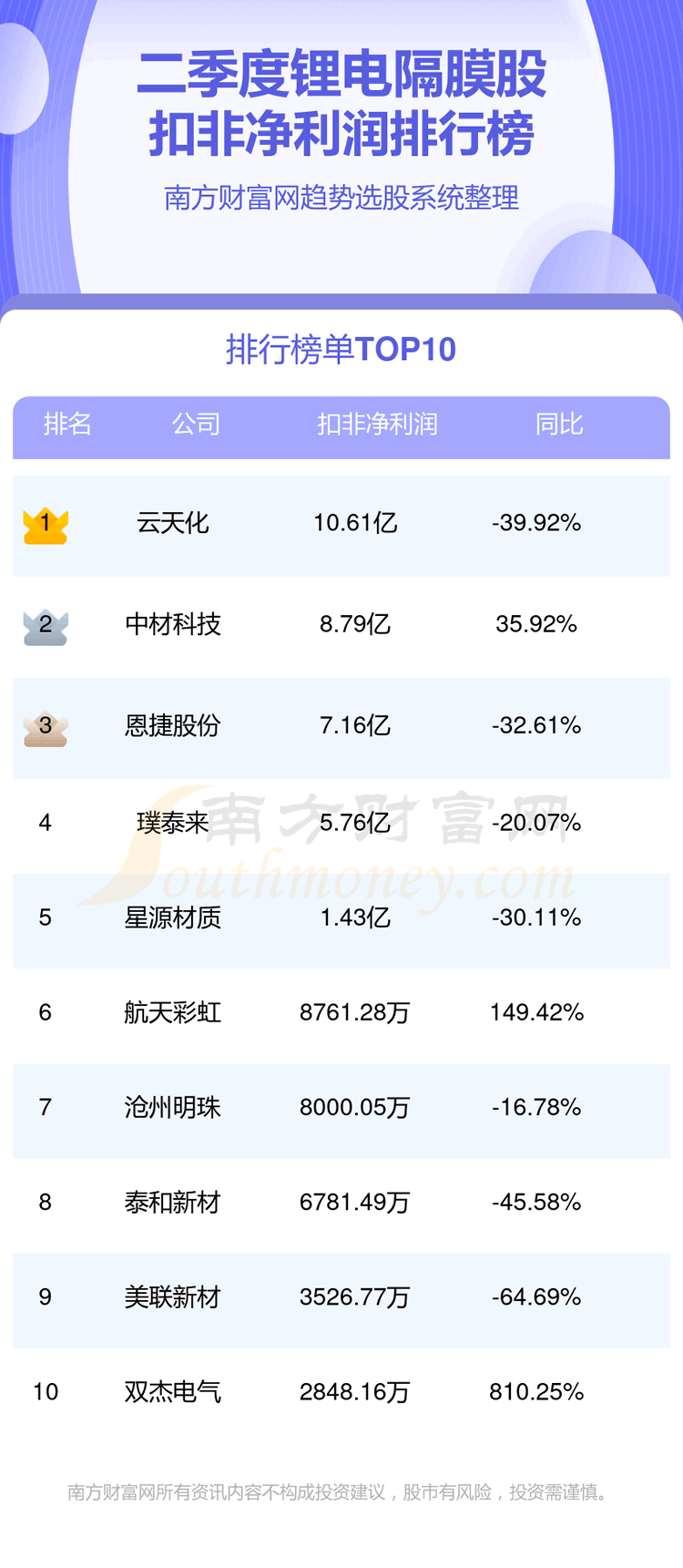 二、扣非净利润排行榜: