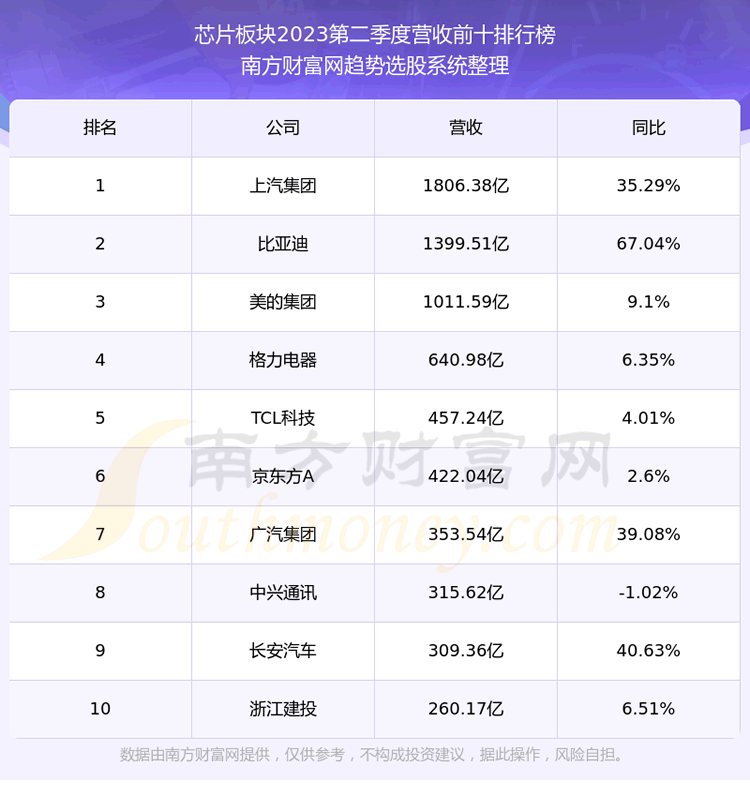 按照趋势选股系统统计,该股所属板块为芯片板块,该板块共有470只股票,纳芯微2023第二季度营收在该板块中排名为第470名,该板块2023第二季度营收排名前十的股票如下表: