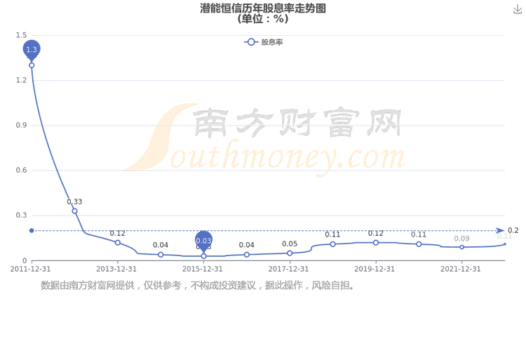 近年潜能恒信年度股息率走势如下图: