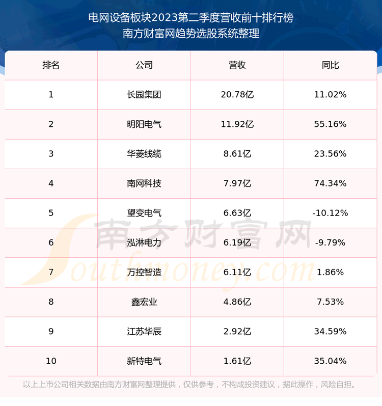 按照趋势选股系统统计,该股所属板块为电网设备板块,该板块共有14只股票,国电南自2023第二季度营收在该板块中排名为第14名,该板块2023第二季度营收排名前十的股票如下表: