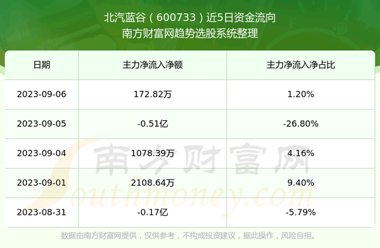 二、北汽蓝谷(600733)近期盘面、资金面情况