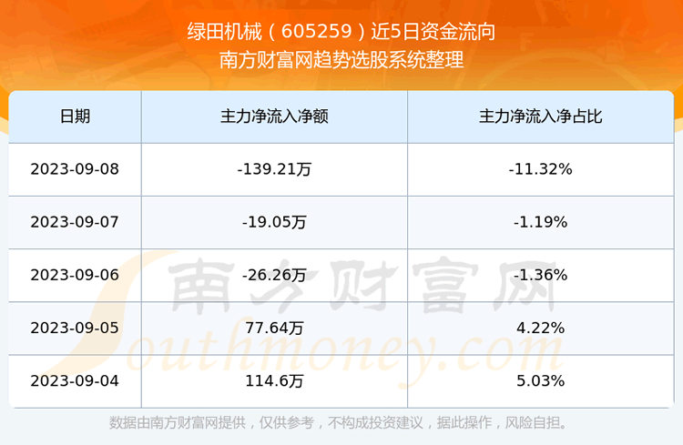 二、绿田机械(605259)近期盘面、资金面情况