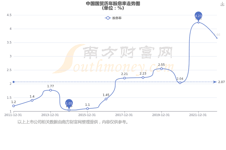 近年中国国贸年度股息率走势如下图: