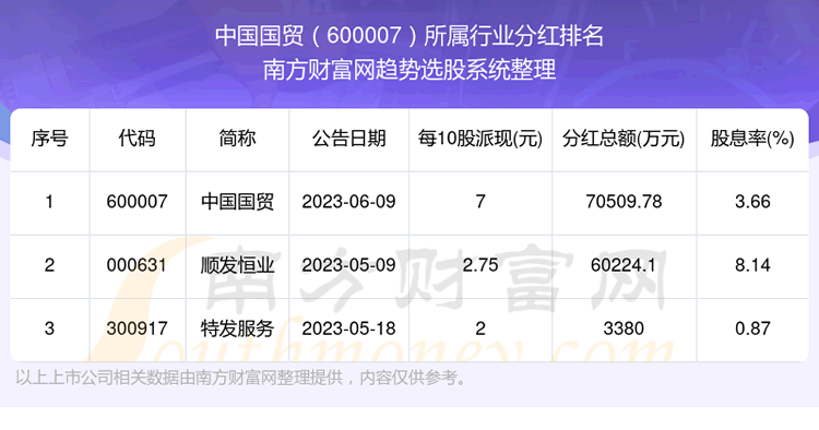 二、中国国贸600007行业分红排名
