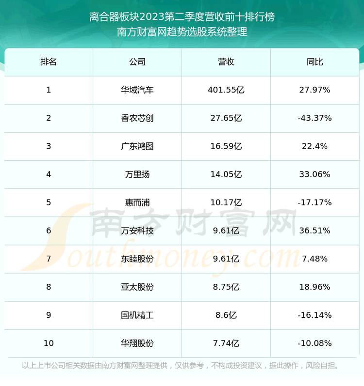 按照趋势选股系统统计,该股所属板块为离合器板块,该板块共有28只股票,福达股份2023第二季度营收在该板块中排名为第20名,该板块2023第二季度营收排名前十的股票如下表: