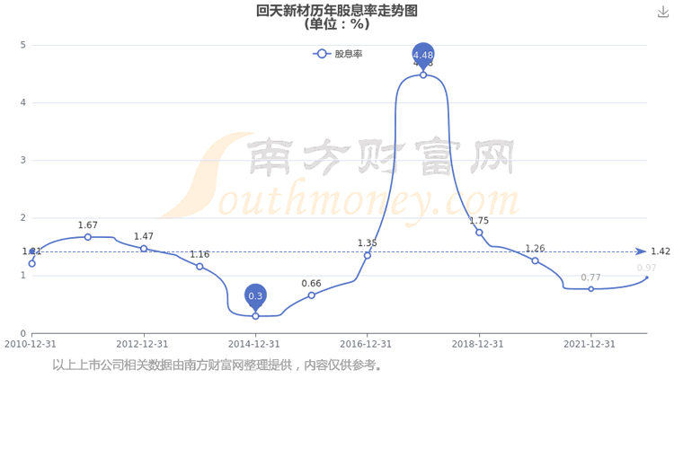 回天新材最新一次公布的分红方案:10转3派1.5元。