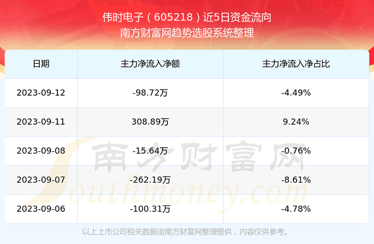 二、伟时电子(605218)近期盘面、资金面情况