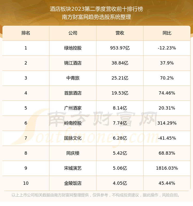 按照趋势选股系统统计,该股所属板块为酒店板块,该板块共有18只股票,首旅酒店2023第二季度营收在该板块中排名为第4名,该板块2023第二季度营收排名前十的股票如下表: