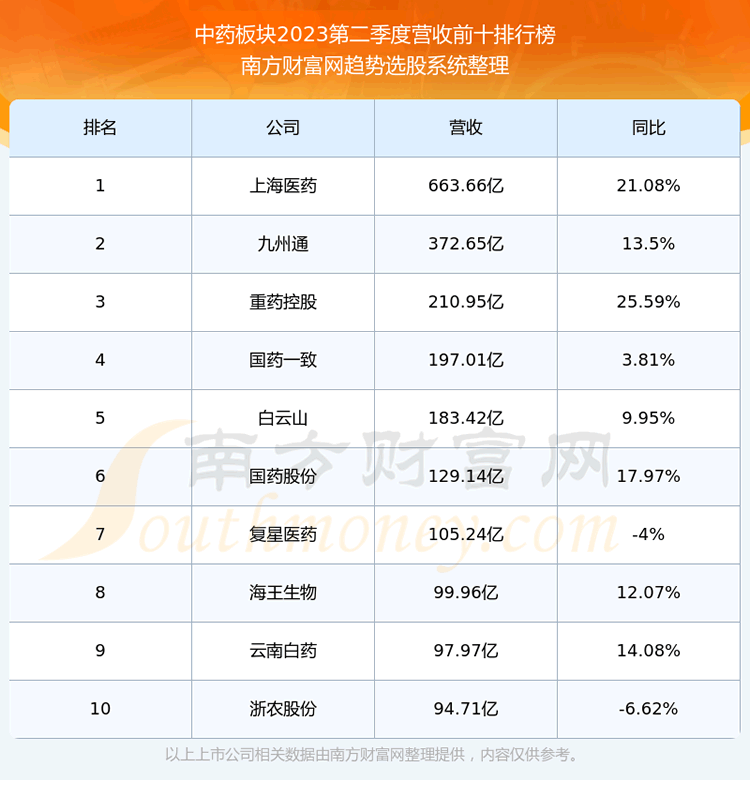 按照趋势选股系统统计,该股所属板块为中药板块,该板块共有160只股票,同仁堂2023第二季度营收在该板块中排名为第19名,该板块2023第二季度营收排名前十的股票如下表: