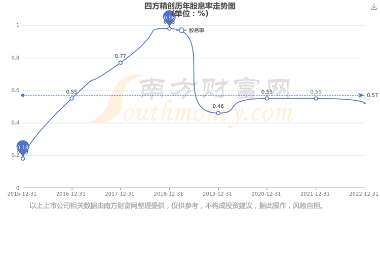 四方精创最新一次公布的分红方案为10派0.6元。本次权益分派股权登记日为2023年5月26日,除权除息日为2023年5月29日,派息日为2023年5月29日。