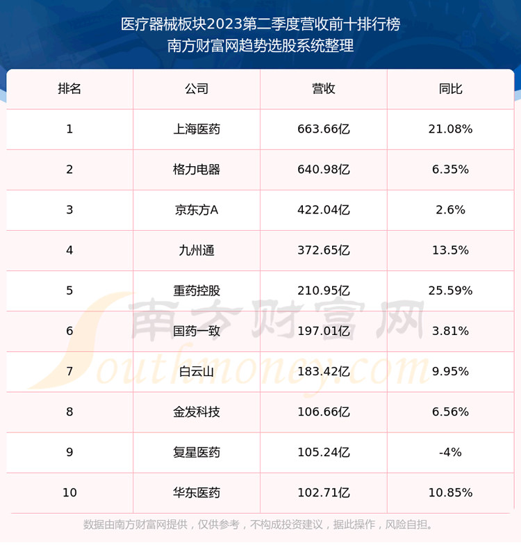 按照趋势选股系统统计,该股所属板块为医疗器械板块,该板块共有390只股票,春立医疗2023第二季度营收在该板块中排名为第226名,该板块2023第二季度营收排名前十的股票如下表: