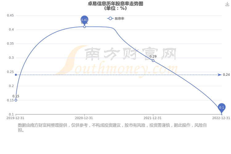 近年卓易信息年度股息率走势如下图: