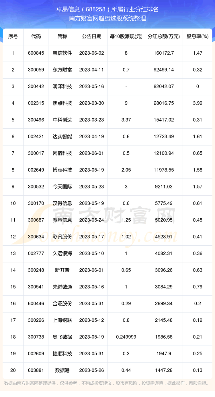 二、卓易信息688258行业分红排名