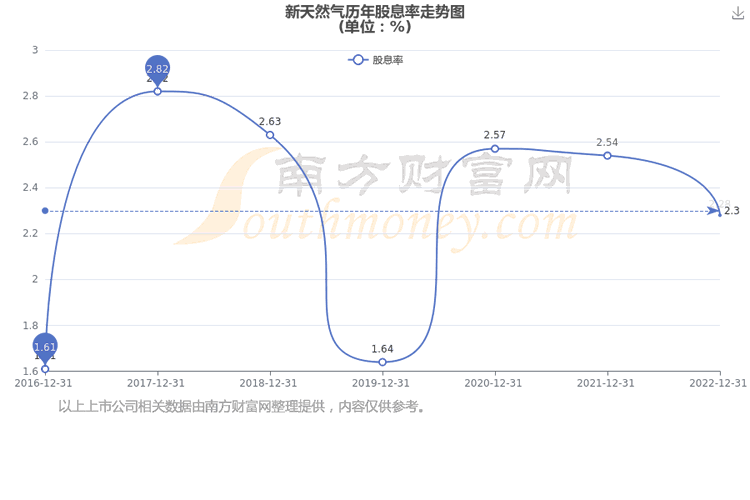 新天然气最新一次公布的分红方案为10派6元。本次权益分派股权登记日为2023年5月31日,除权除息日为2023年6月1日,派息日为2023年6月1日。