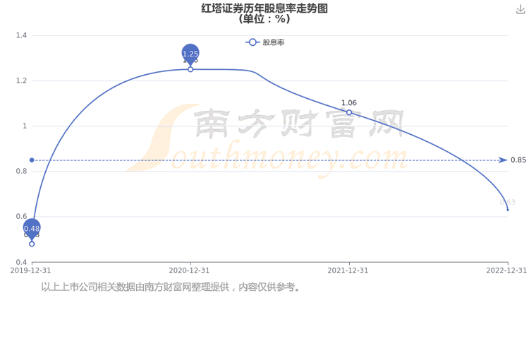 红塔证券最新一次公布的分红方案:10派0.5元。