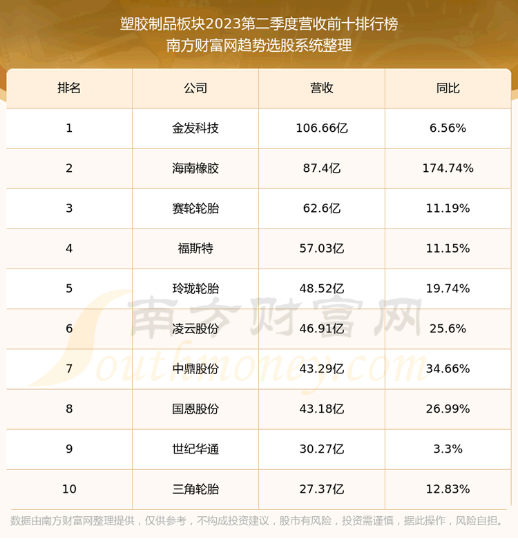 按照趋势选股系统统计,该股所属板块为塑胶制品板块,该板块共有77只股票,统联精密2023第二季度营收在该板块中排名为第77名,该板块2023第二季度营收排名前十的股票如下表: