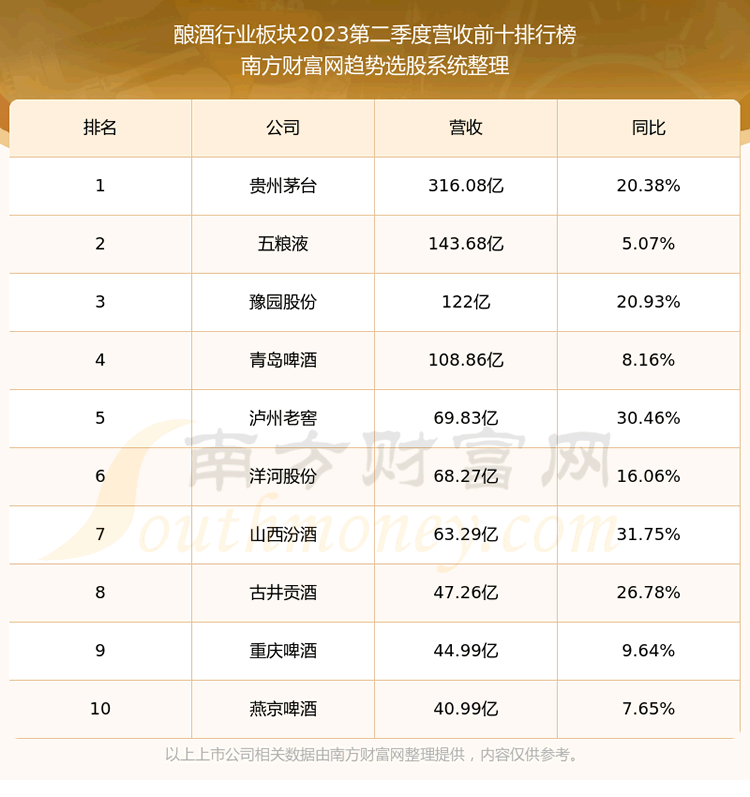 按照趋势选股系统统计,该股所属板块为酿酒行业板块,该板块共有42只股票,*ST莫高2023第二季度营收在该板块中排名为第42名,该板块2023第二季度营收排名前十的股票如下表: