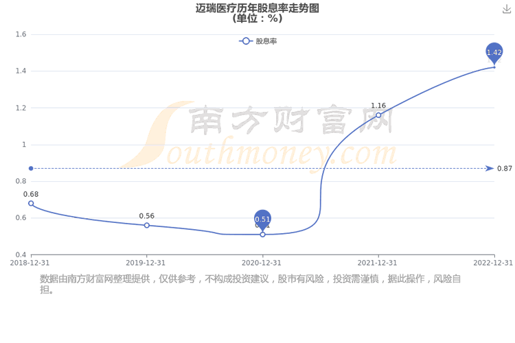 近年迈瑞医疗年度股息率走势如下图:
