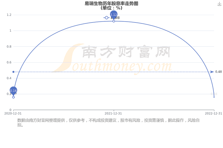易瑞生物最新一次公布的分红方案:10派0.212元。