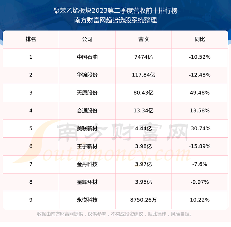 按照趋势选股系统统计,该股所属板块为聚苯乙烯板块,该板块共有9只股票,ST沪科2023第二季度营收在该板块中排名为第9名,该板块2023第二季度营收排名前十的股票如下表: