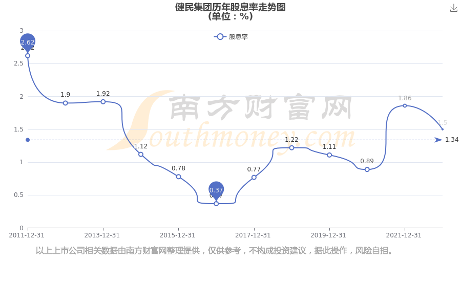 近年健民集团年度股息率走势如下图: