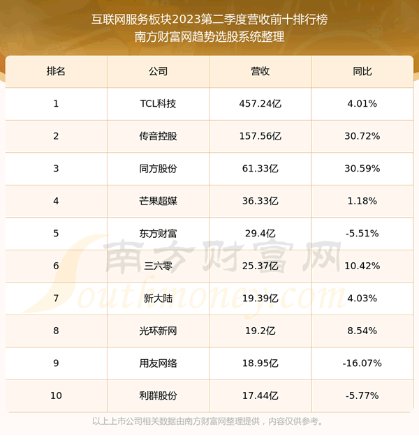 按照趋势选股系统统计,该股所属板块为互联网服务板块,该板块共有50只股票,宝信软件2023第二季度营收在该板块中排名为第50名,该板块2023第二季度营收排名前十的股票如下表:
