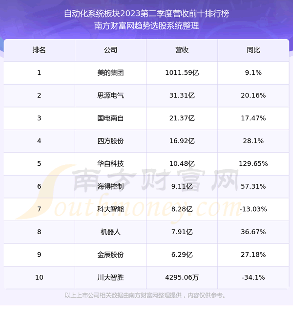 按照趋势选股系统统计,该股所属板块为自动化系统板块,该板块共有11只股票,骄成超声2023第二季度营收在该板块中排名为第11名,该板块2023第二季度营收排名前十的股票如下表:
