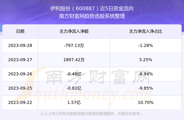 二、伊利股份(600887)近期盘面、资金面情况