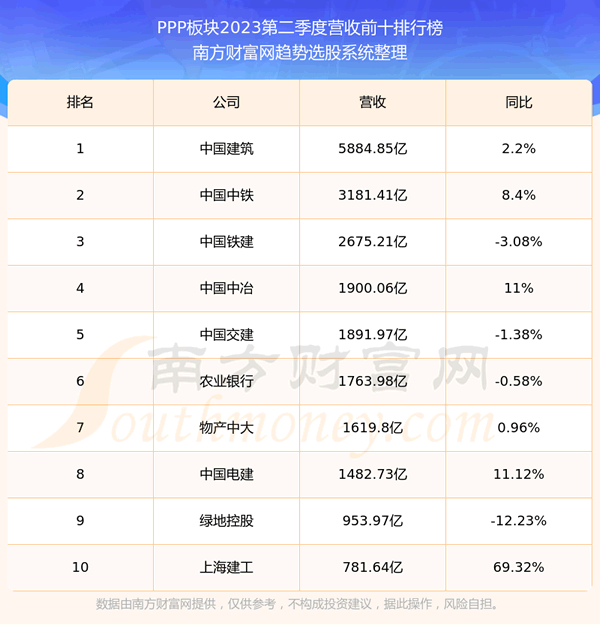 按照趋势选股系统统计,该股所属板块为PPP板块,该板块共有230只股票,山东高速2023第二季度营收在该板块中排名为第230名,该板块2023第二季度营收排名前十的股票如下表: