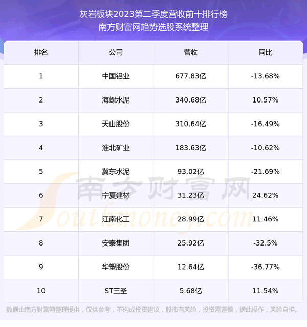 按照趋势选股系统统计,该股所属板块为灰岩板块,该板块共有12只股票,华塑股份2023第二季度营收在该板块中排名为第9名,该板块2023第二季度营收排名前十的股票如下表: