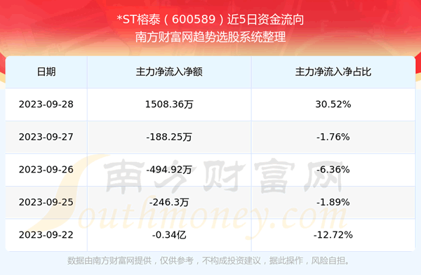 二、*ST榕泰(600589)近期盘面、资金面情况