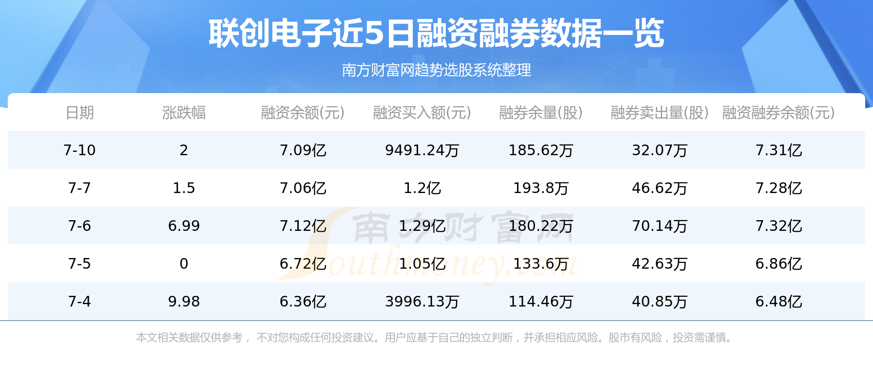 联创电子7月10日融券信息显示,融资方面,当日融资买入9491.24万元,融资偿还9161.88万元,融资净买额329.36万元。融券方面,融券卖出32.07万股,融券偿还40.25万股,融券余量185.62万股,融券余额2175.49万元。融资融券余额7.31亿元。